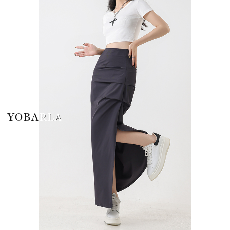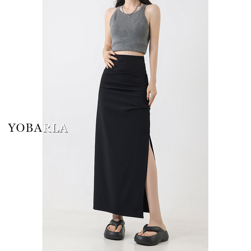黑色开叉休闲半身裙女秋季新款大码胖mm遮肚子显瘦中长款包臀裙子