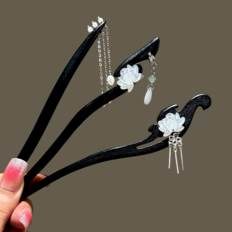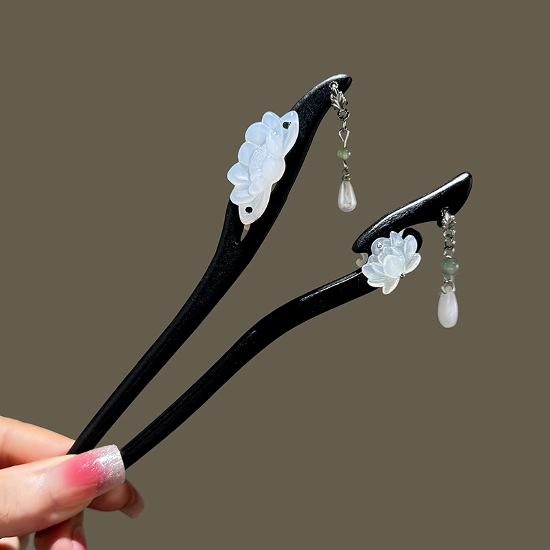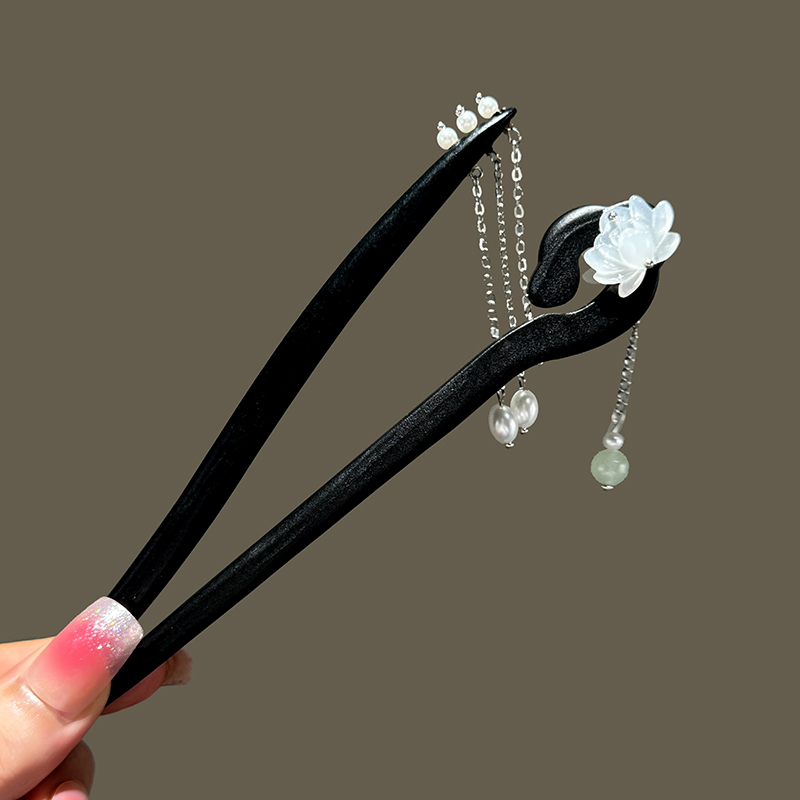 中式流苏花朵发簪古风盘发马面汉服高级后脑勺旗袍簪子发钗头饰