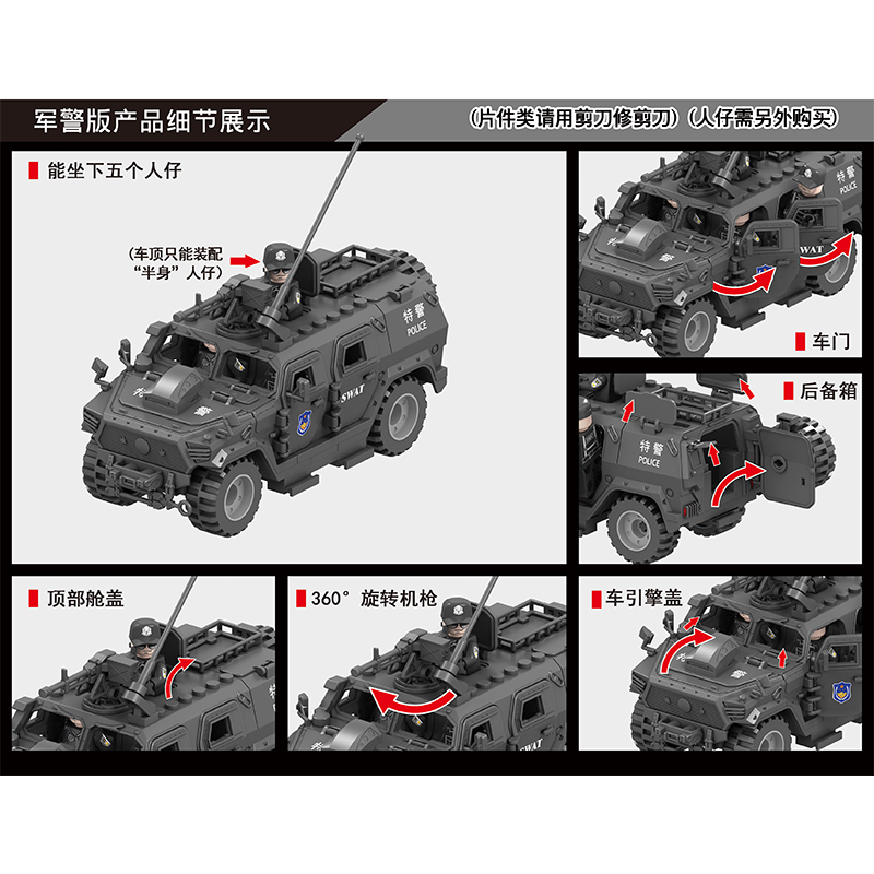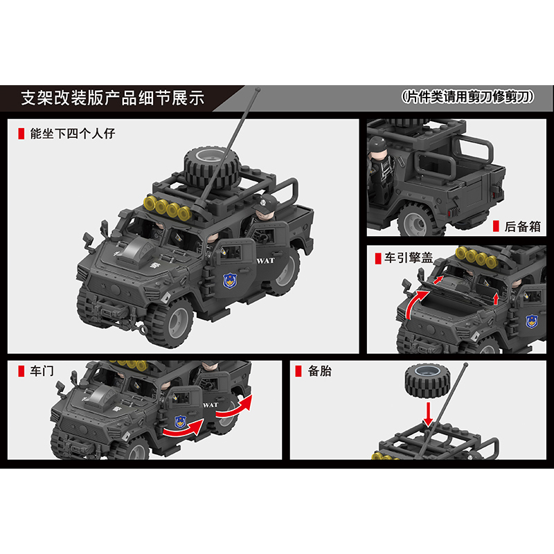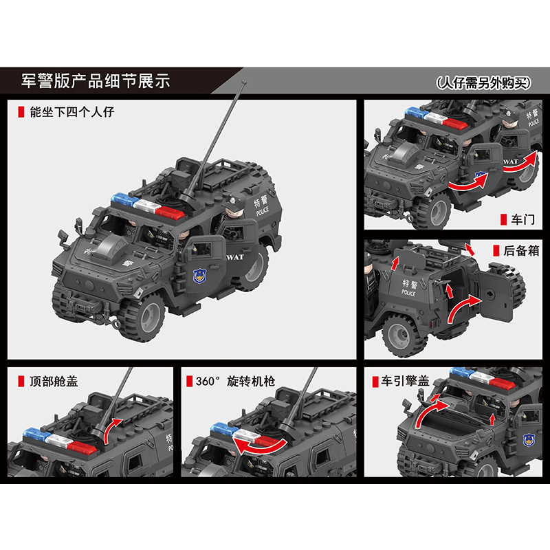 托比狮积木军事特种兵拼装模型玩具猛士装甲车悍马车人仔男生益智