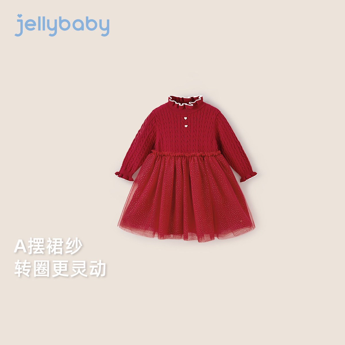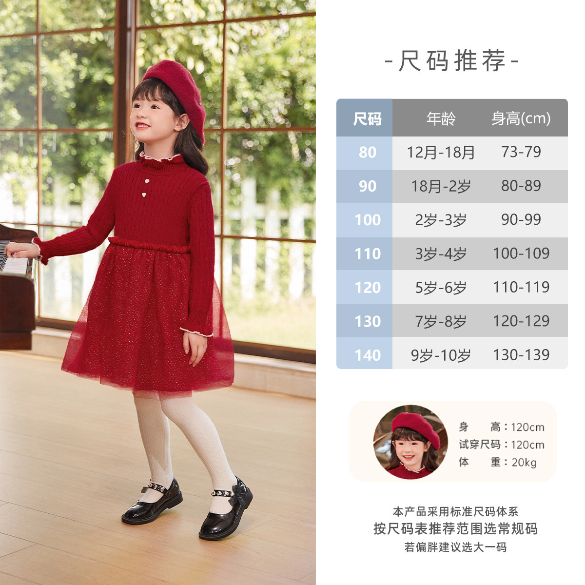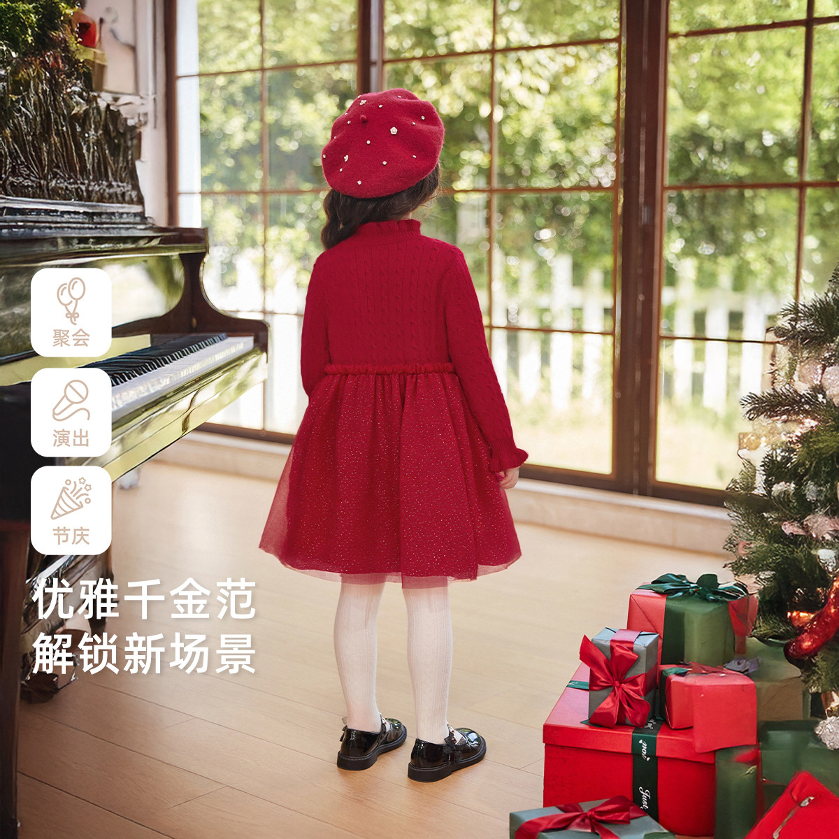 [抗菌锁温]女童连衣裙大童加绒公主裙秋儿童秋冬红色纱裙宝宝裙子