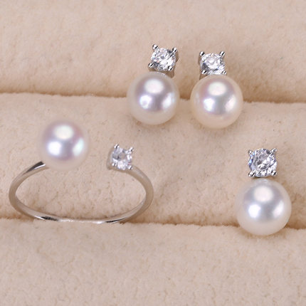s925纯银耳钉项坠戒指三件套配件 diy手工制作珍珠王妃款单钻配件