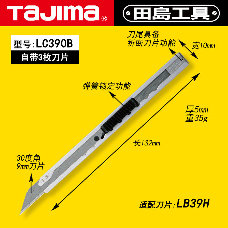 tajima日本田岛壁纸刀墙纸刀片美工刀架9mm小号30度不锈钢贴膜刀