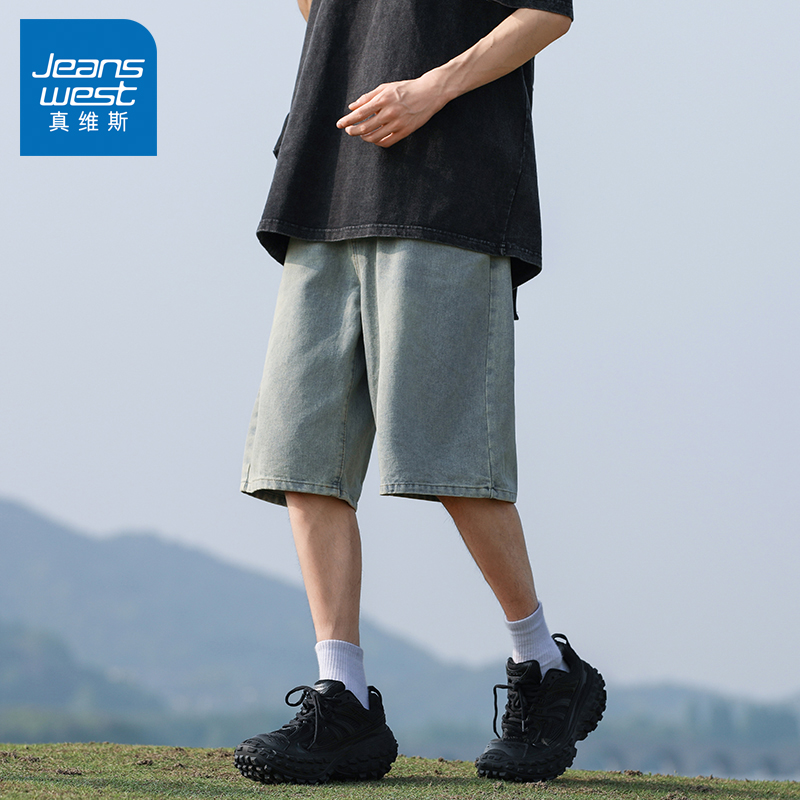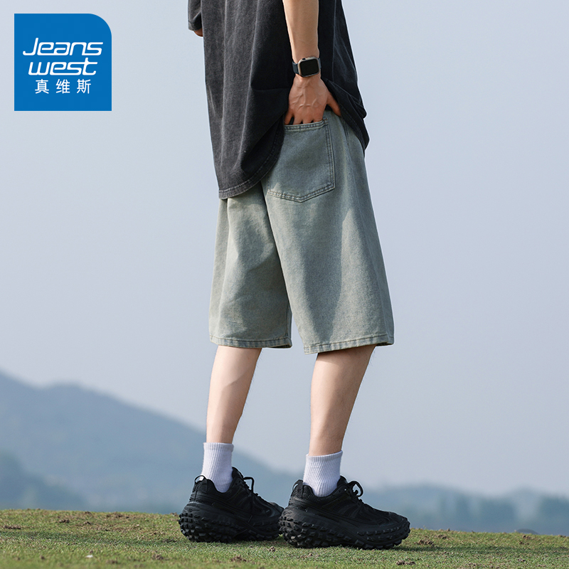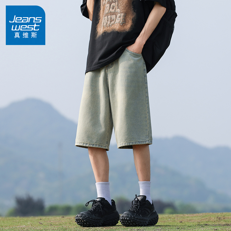 N5真维斯牛仔短裤男2025夏季新款潮牌男装休闲宽松百搭直筒五分裤