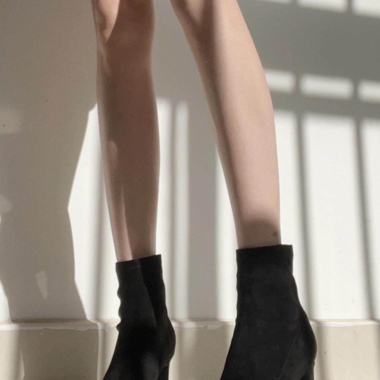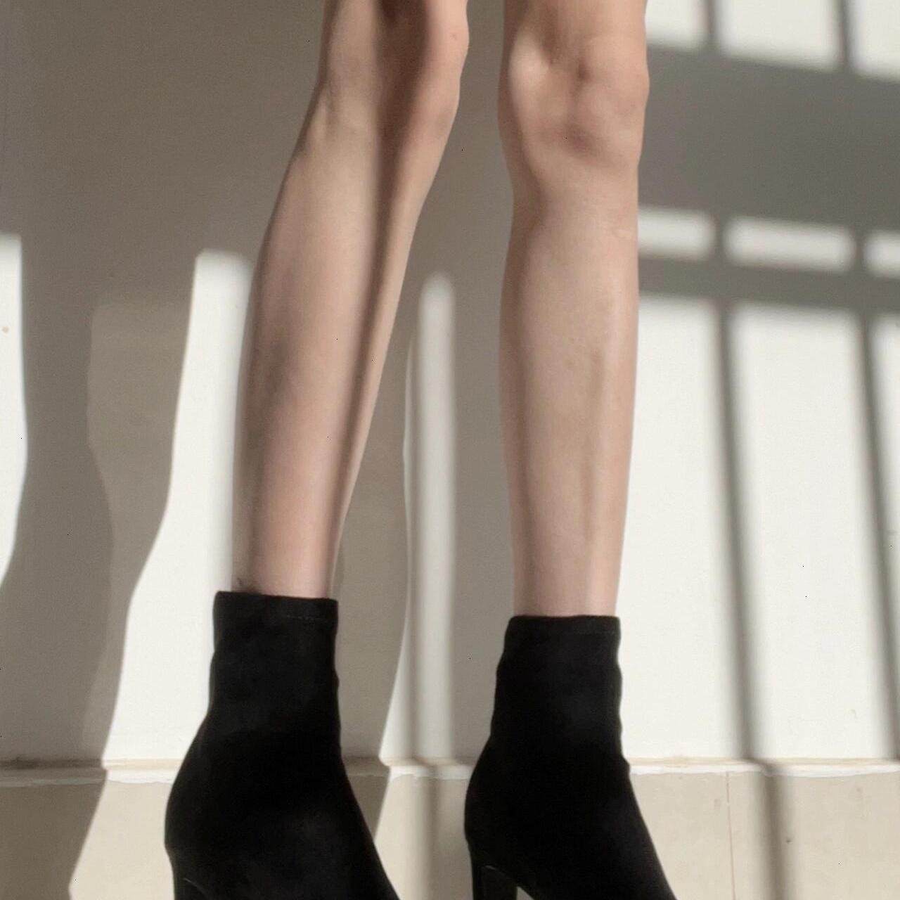弹力靴绒面短靴瘦瘦靴高跟粗跟