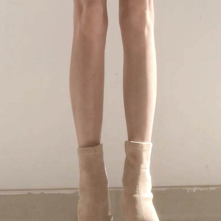弹力袜靴女2025新款绒面瘦瘦靴短靴女春秋马丁靴女高跟粗跟单靴子
