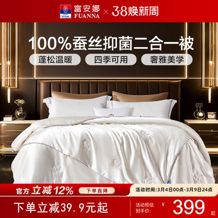 富安娜蚕丝被夏凉被冬天加厚保暖被子学生宿舍二合一子母空调被芯