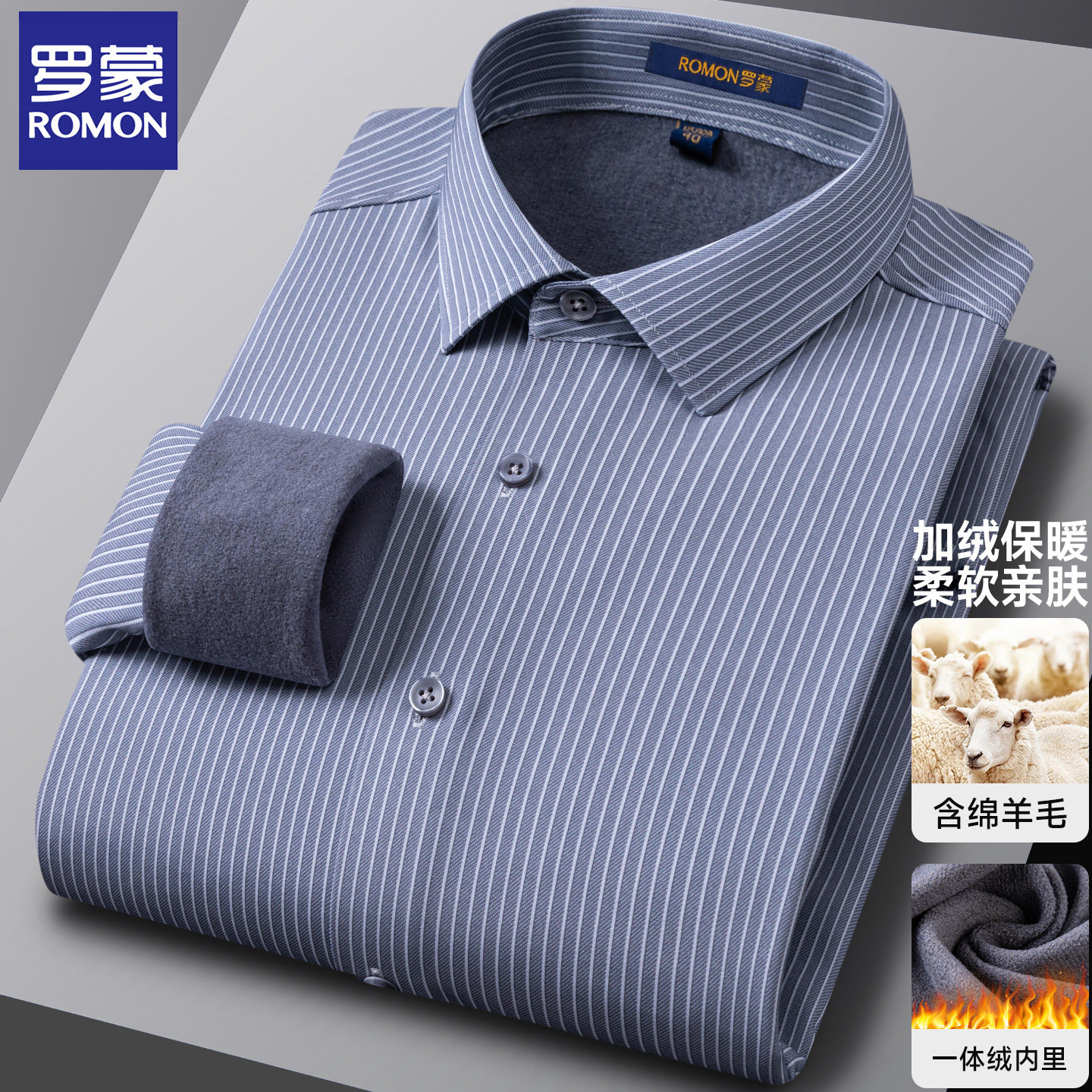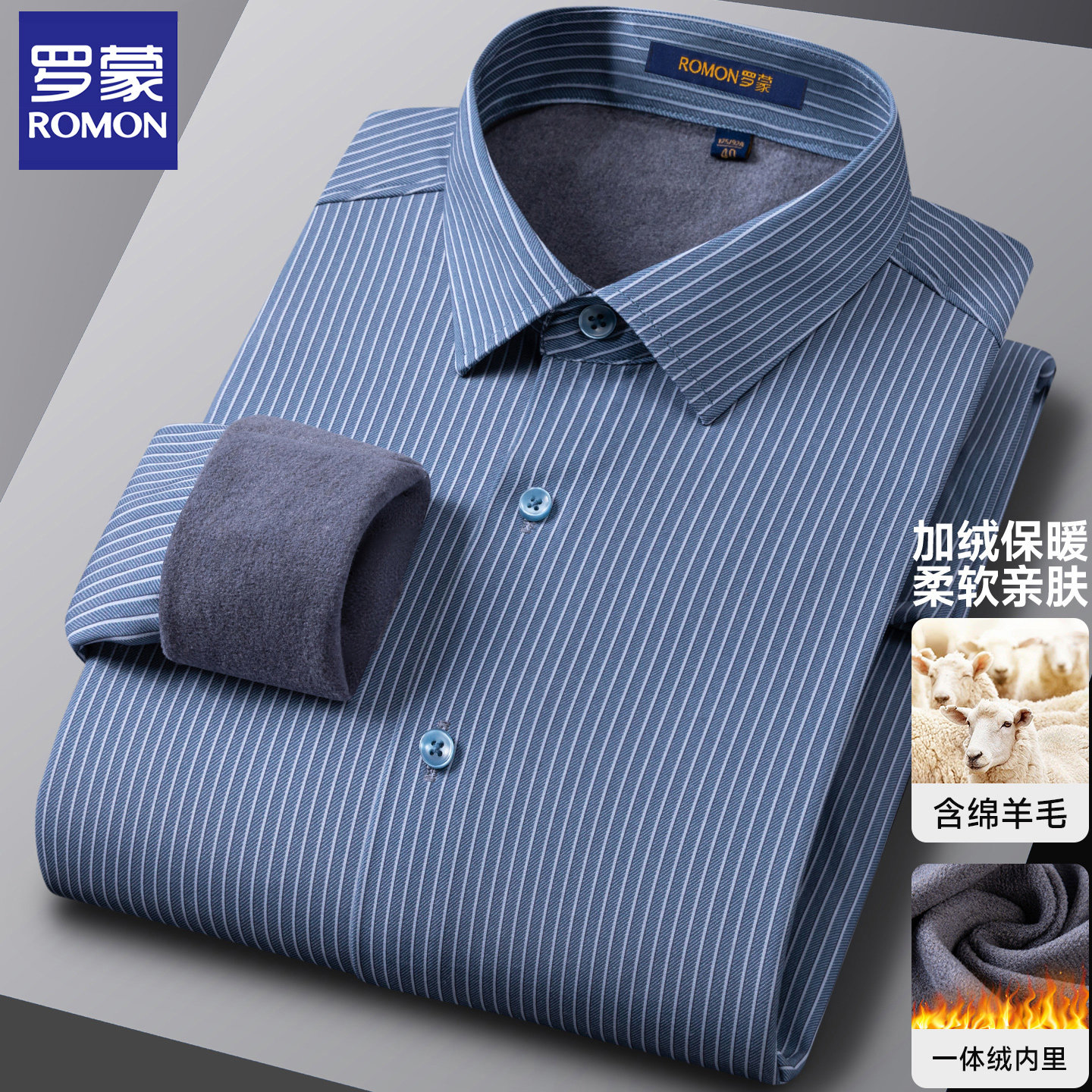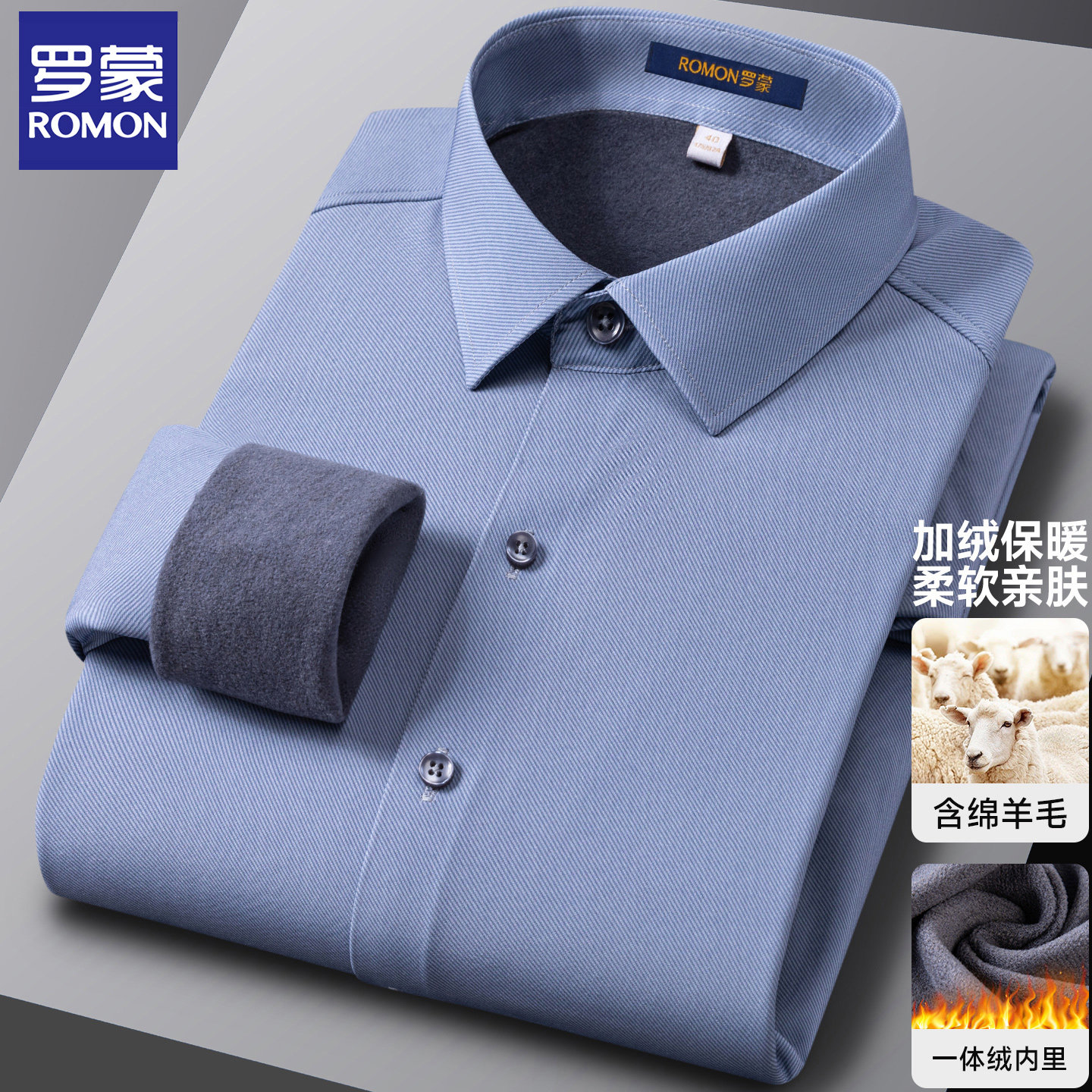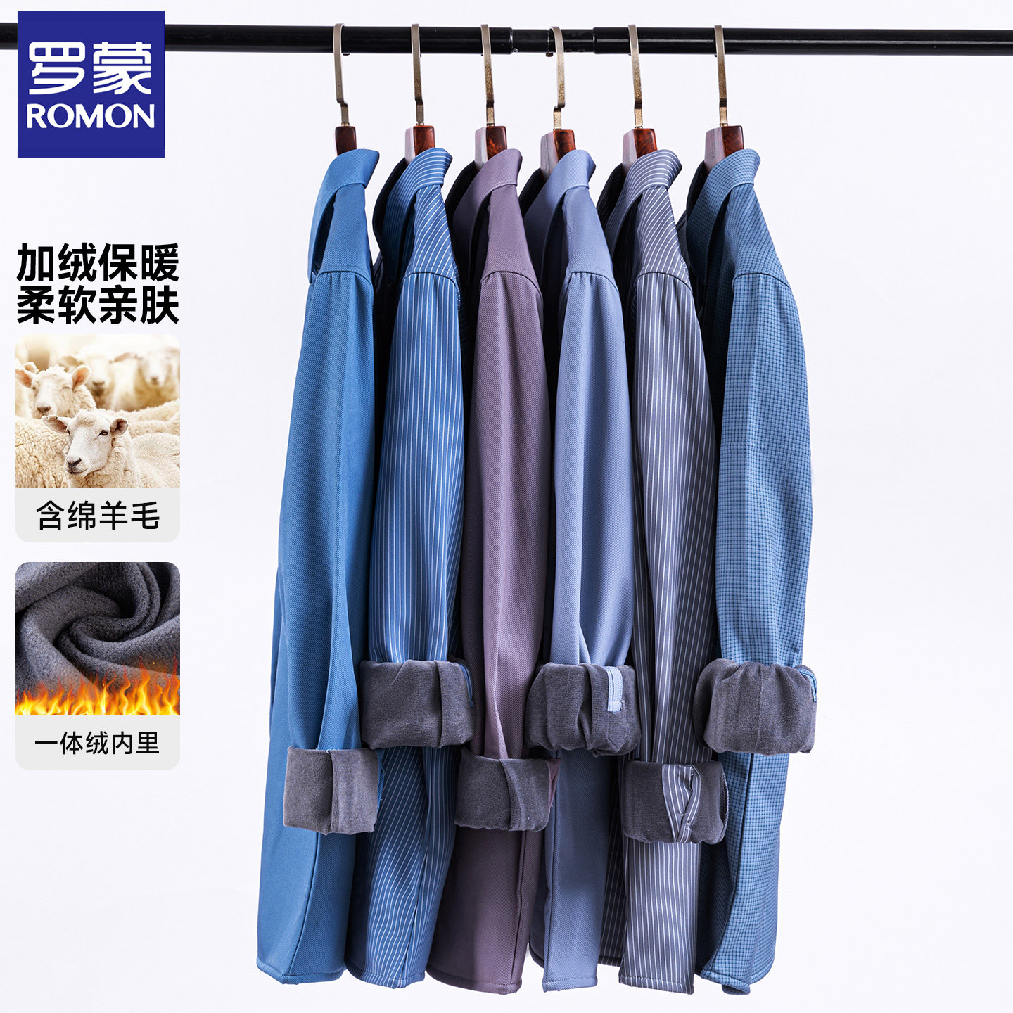 【可机洗绵羊毛】罗蒙冬季加绒加厚衬衫男士免烫商务长袖打底衬衣