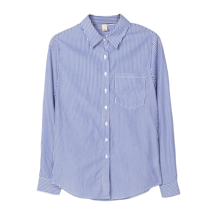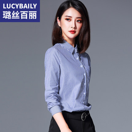 璐丝百丽竖条纹面试职业纯棉衬衫
