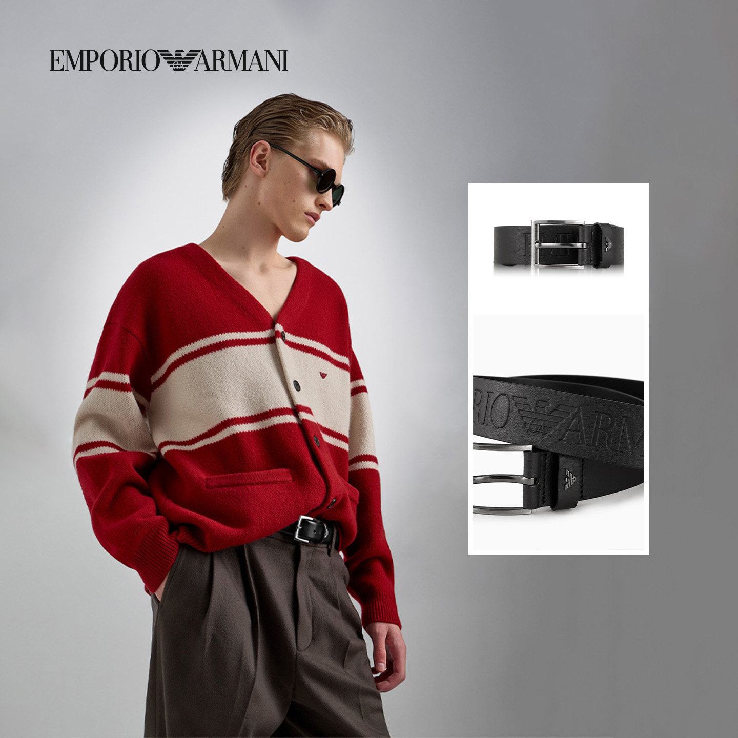 【新年礼物】EMPORIO ARMANI/阿玛尼男士牛皮革针扣腰带皮带配饰