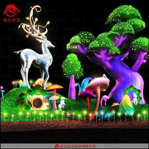 奇幻森林大型发光立体蘑菇美陈商场特殊材料夜景美陈雕塑定制