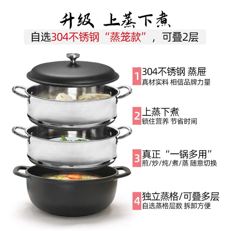 雅多福 铸铁炖锅汤锅28cm老式铁锅手工加厚一体炖煲汤煲生铁锅