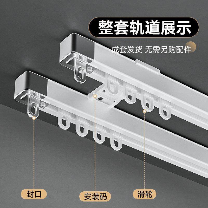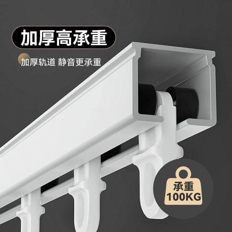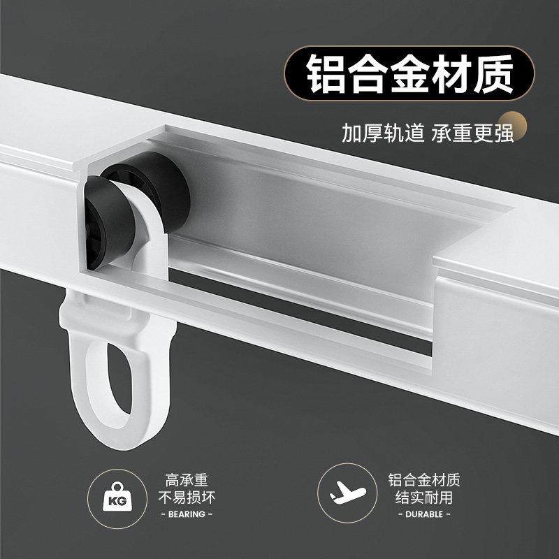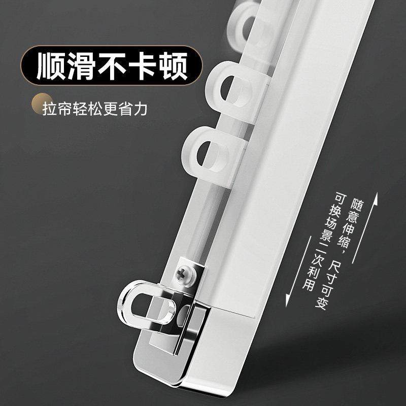 顶装窗帘轨道伸缩挂钩式滑轮侧装铝导轨静音滑轨窗帘杆单轨双直轨
