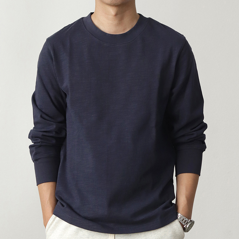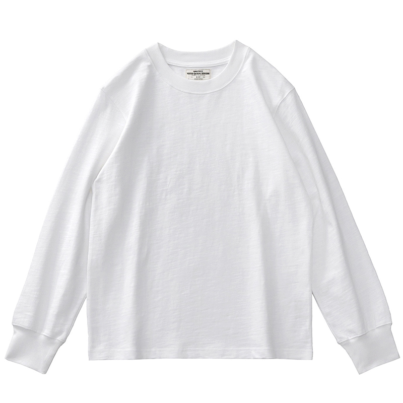 320克重磅竹节纯棉长袖男t恤美式复古宽松休闲加厚纯色圆领上衣