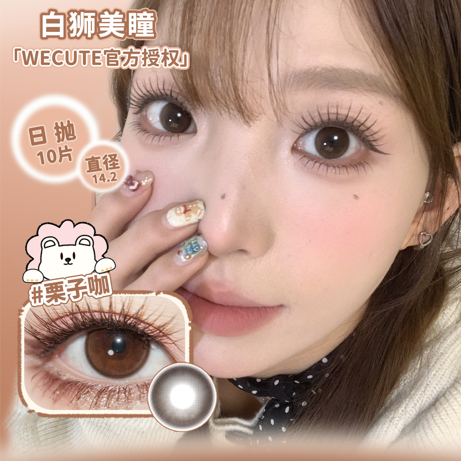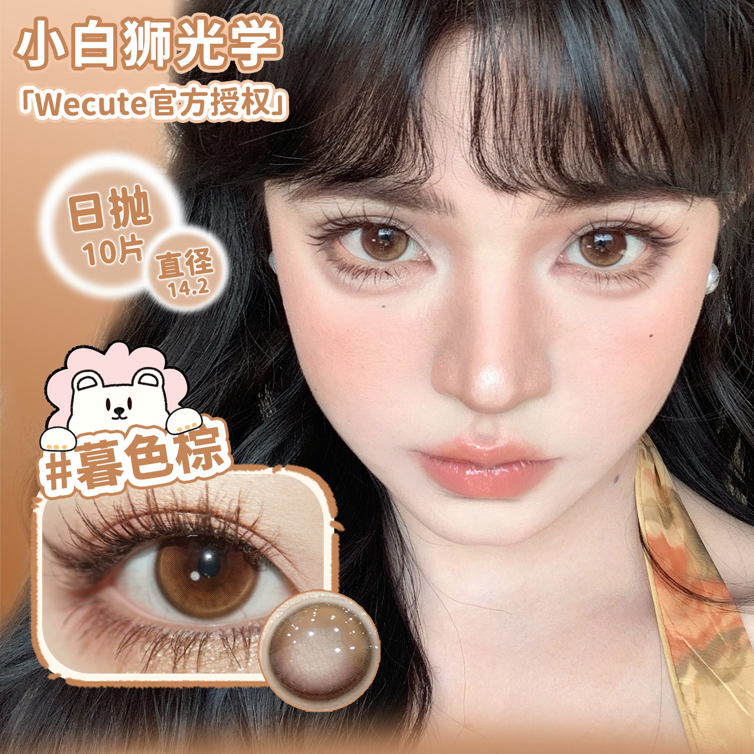 Wecute日抛落日奶酪&蔷薇紫&栗子咖&冰透椰青等白狮美瞳十片装