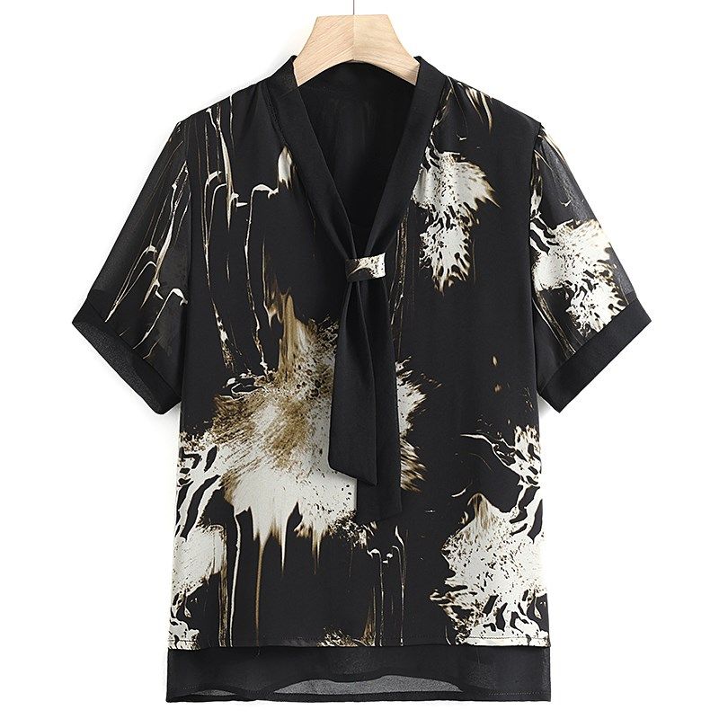 新款妈妈夏装套装中年妇女雪纺小衫中老年女装短袖t恤上衣两件套