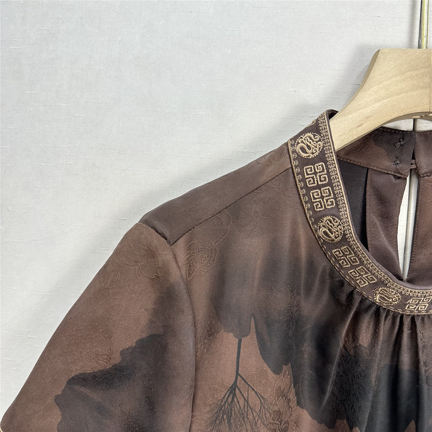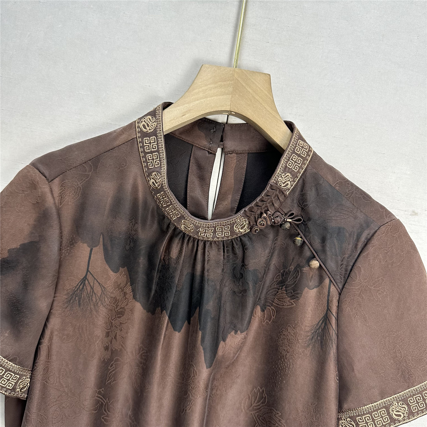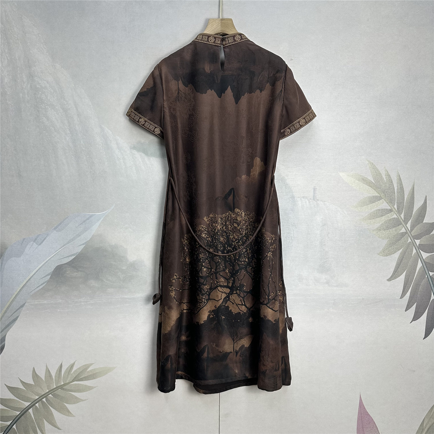 满分桑蚕丝花罗香云纱连衣裙女25新时尚气质真丝提花旗袍系带裙