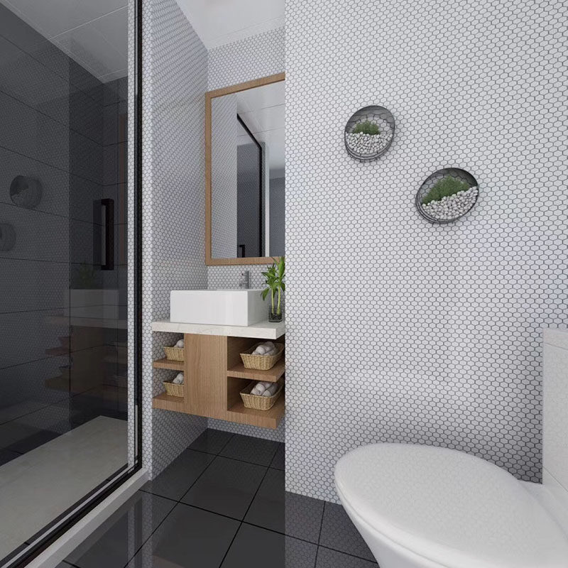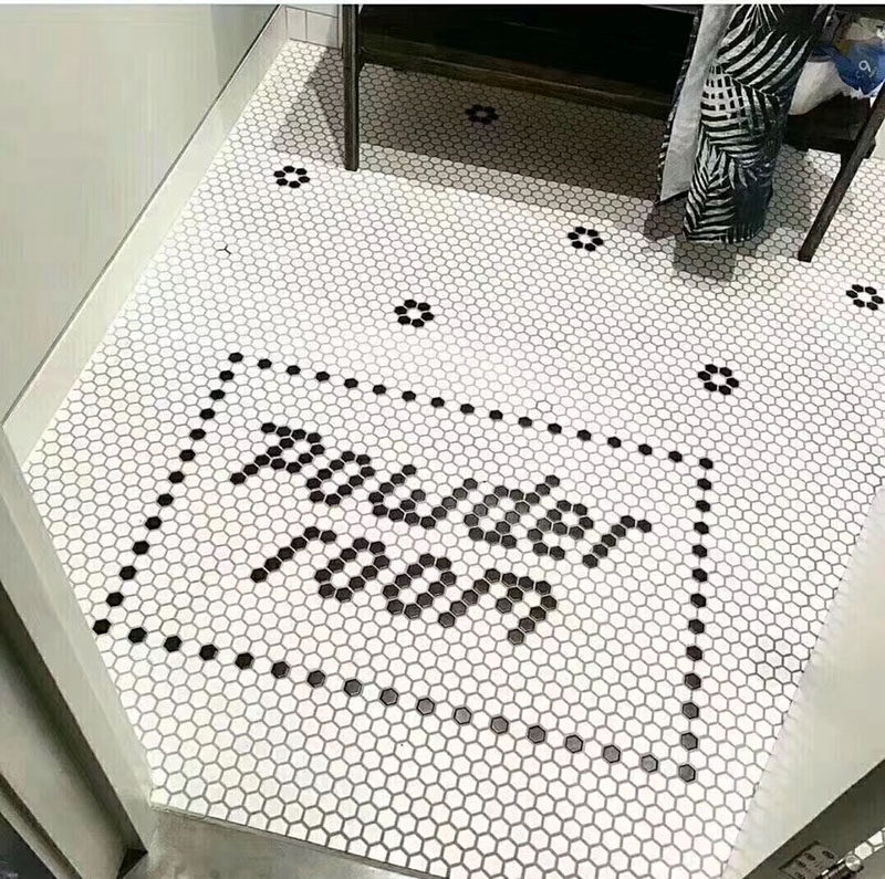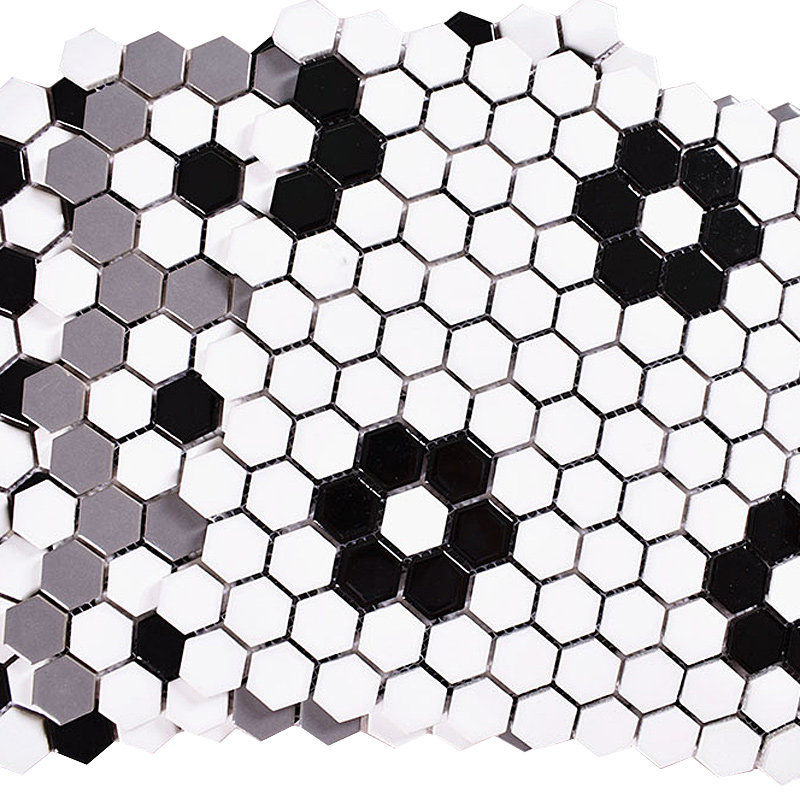 黑白梅花六角马赛克瓷砖厨房浴室地砖背景墙马赛克拼图23六边形瓷