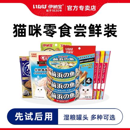 伊纳宝猫零食湿粮肉干鲣鱼条主食罐头前浜试吃罐头金枪鱼补水汤包