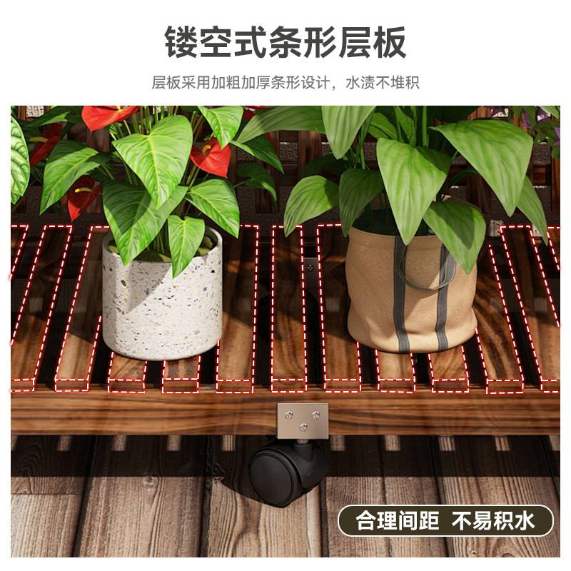 多层实木花架置物架阳台移动阶梯花盆架客厅落地式室内植物收纳架