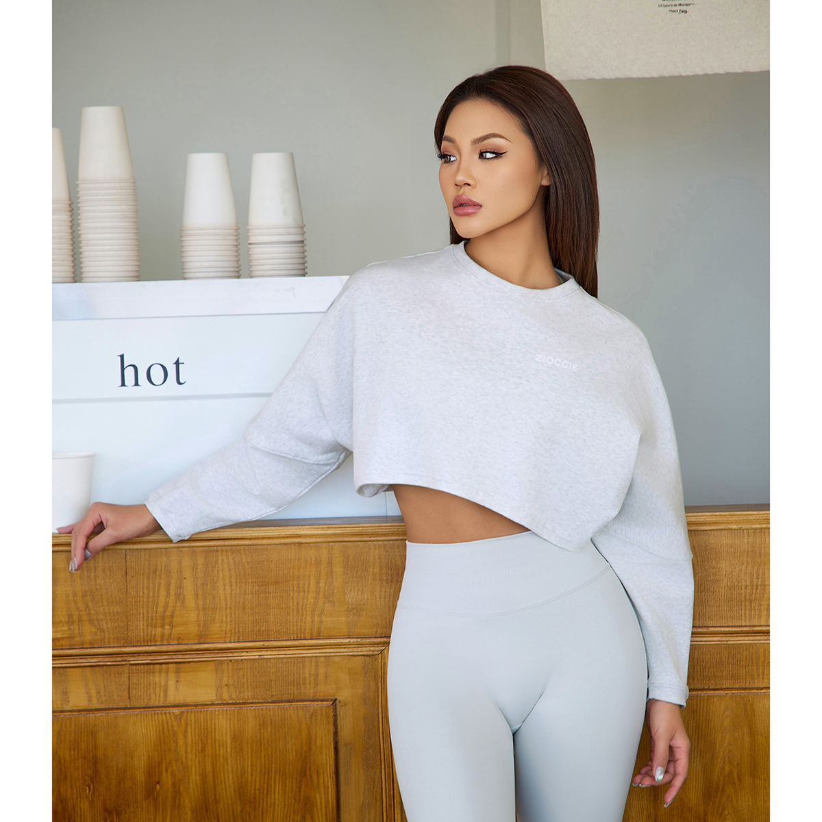 Zioccie瑜伽服长袖宽松露脐罩衫运动上衣休闲卫衣显瘦健身蝙蝠衫