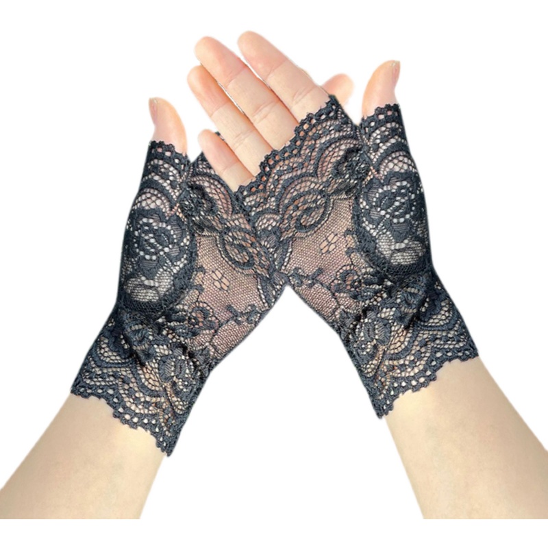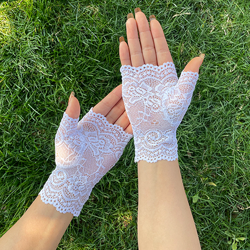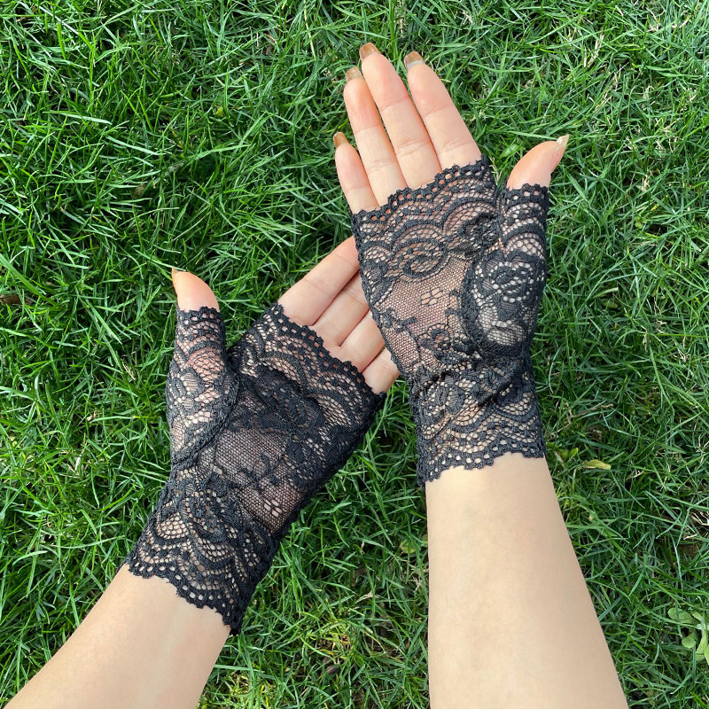 半指防晒手套女弹力蕾丝夏季薄款开车骑行防紫外线遮疤痕露半截指