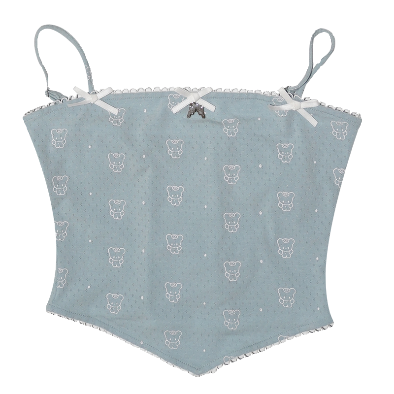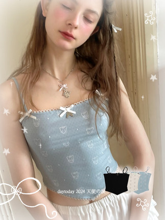 daytoday日常研究所天使の泪可爱小熊印花可拆卸翅膀小吊带背心