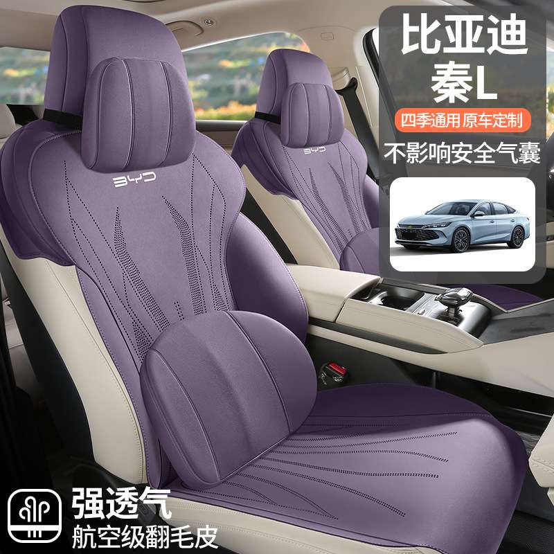 比亚迪秦L专用汽车坐垫四季通用座套秦DMI翻毛皮通风马鞍垫座椅套