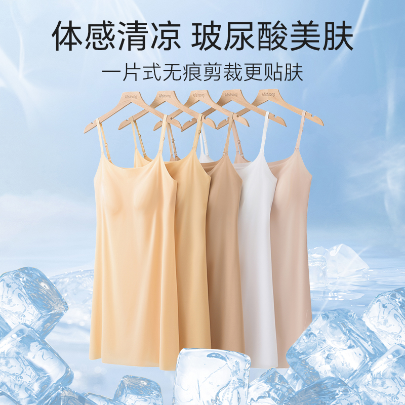 吊带内衬裙带胸垫睡衣防透内搭防走光背心女夏冰丝打底连衣裙睡裙