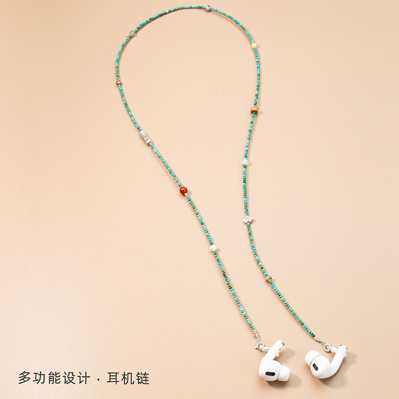 高级天然绿松石眼镜链原创墨镜挂脖女口罩挂绳气质防丢链耳机挂链