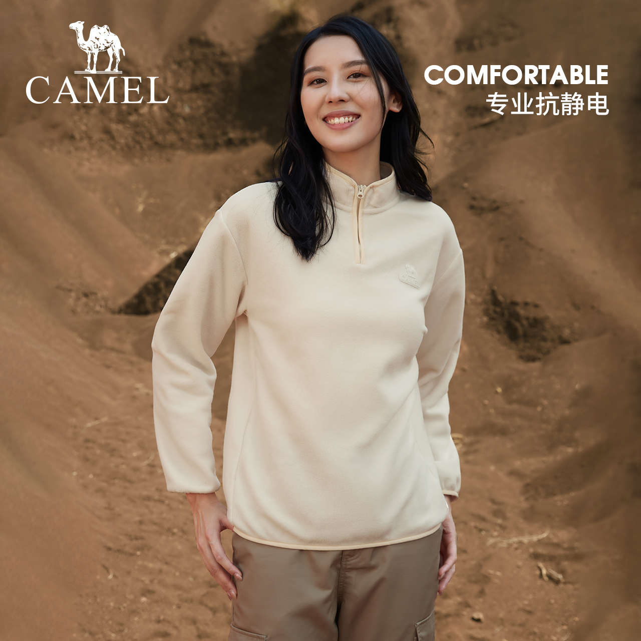 骆驼半开拉链抓绒衣男女同款冬季新款摇粒绒保暖休闲情侣卫衣