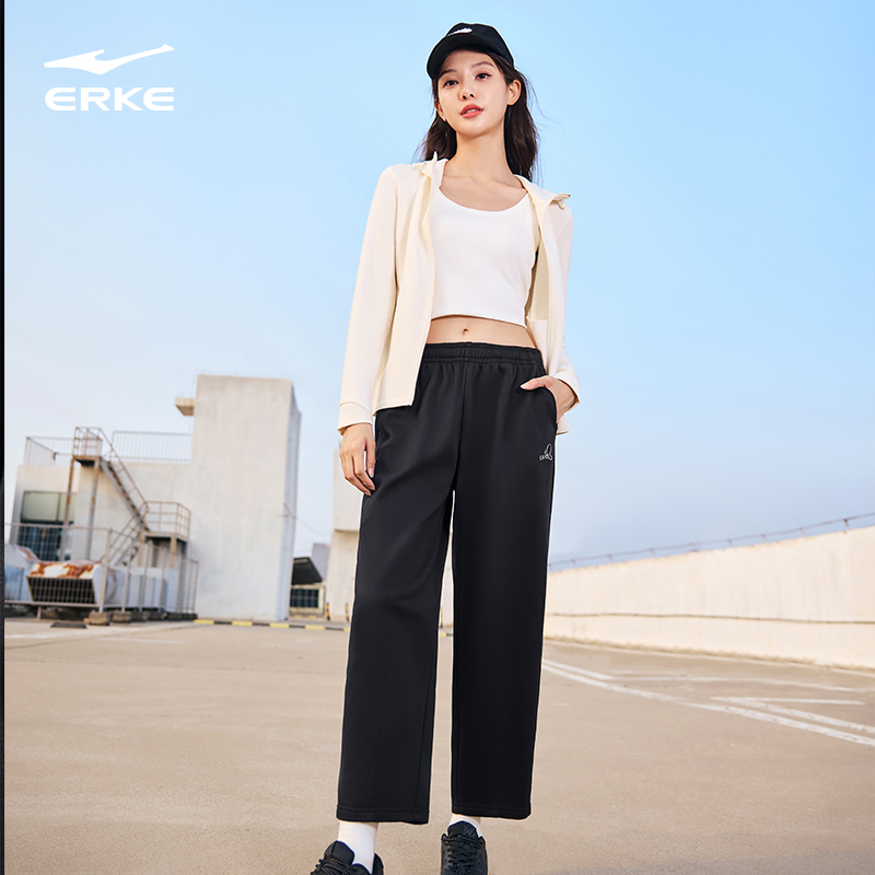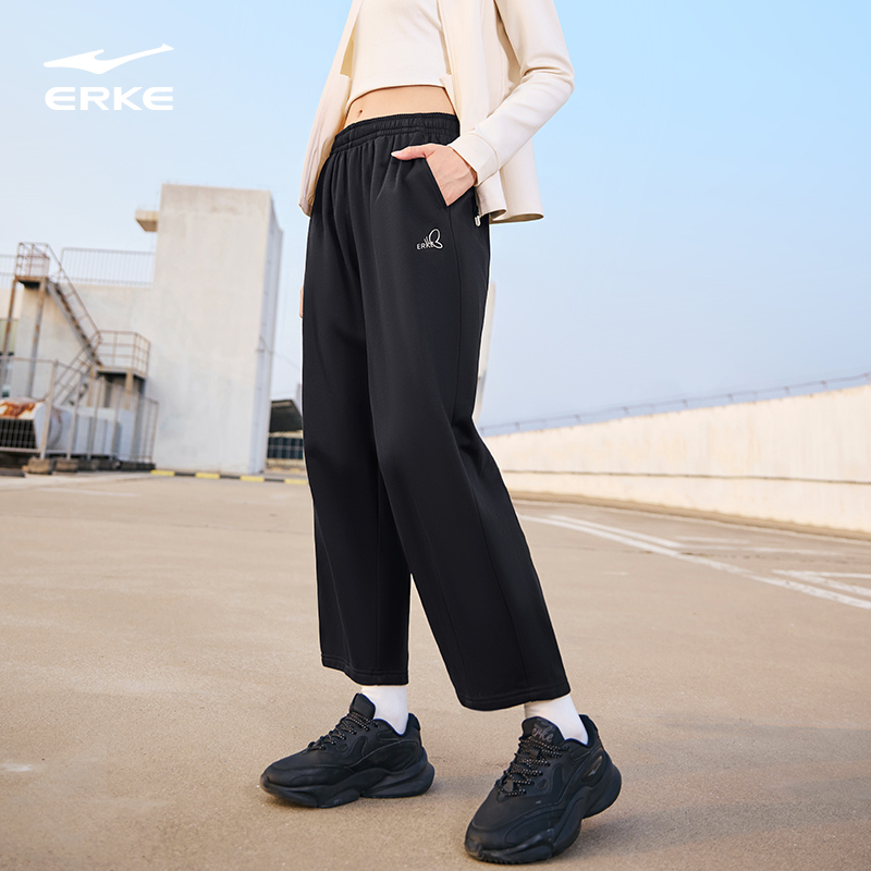 鸿星尔克运动裤女子春秋新款直筒休闲裤加厚女士宽松运动长裤女