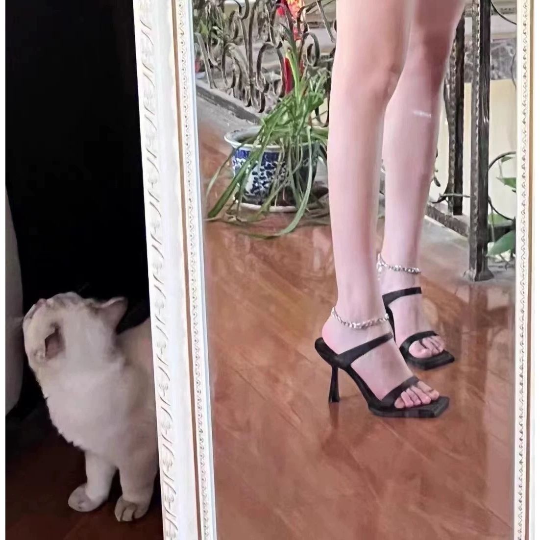 黑色性感细跟高跟鞋女酒吧工作鞋2023新款夏季外穿高跟拖鞋女