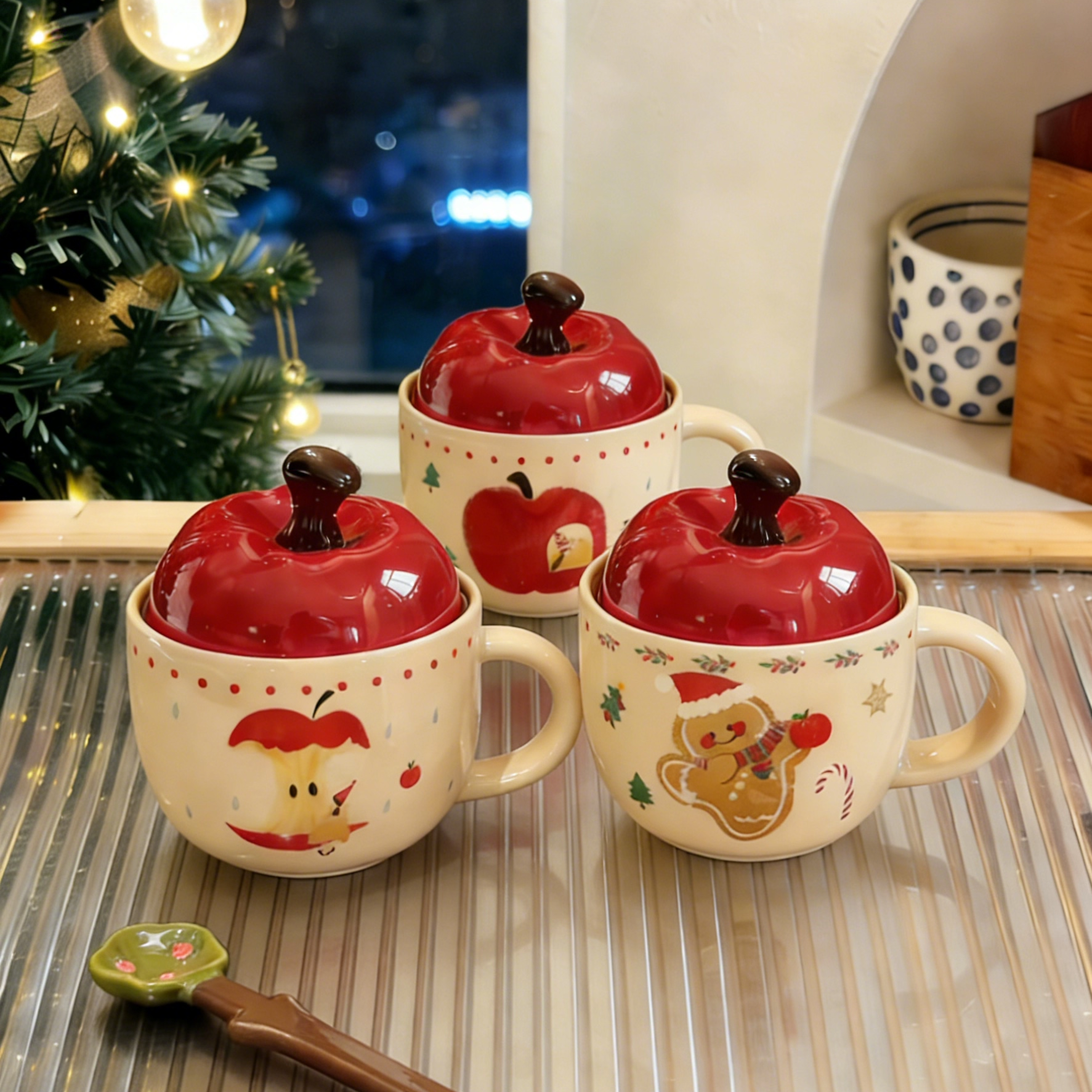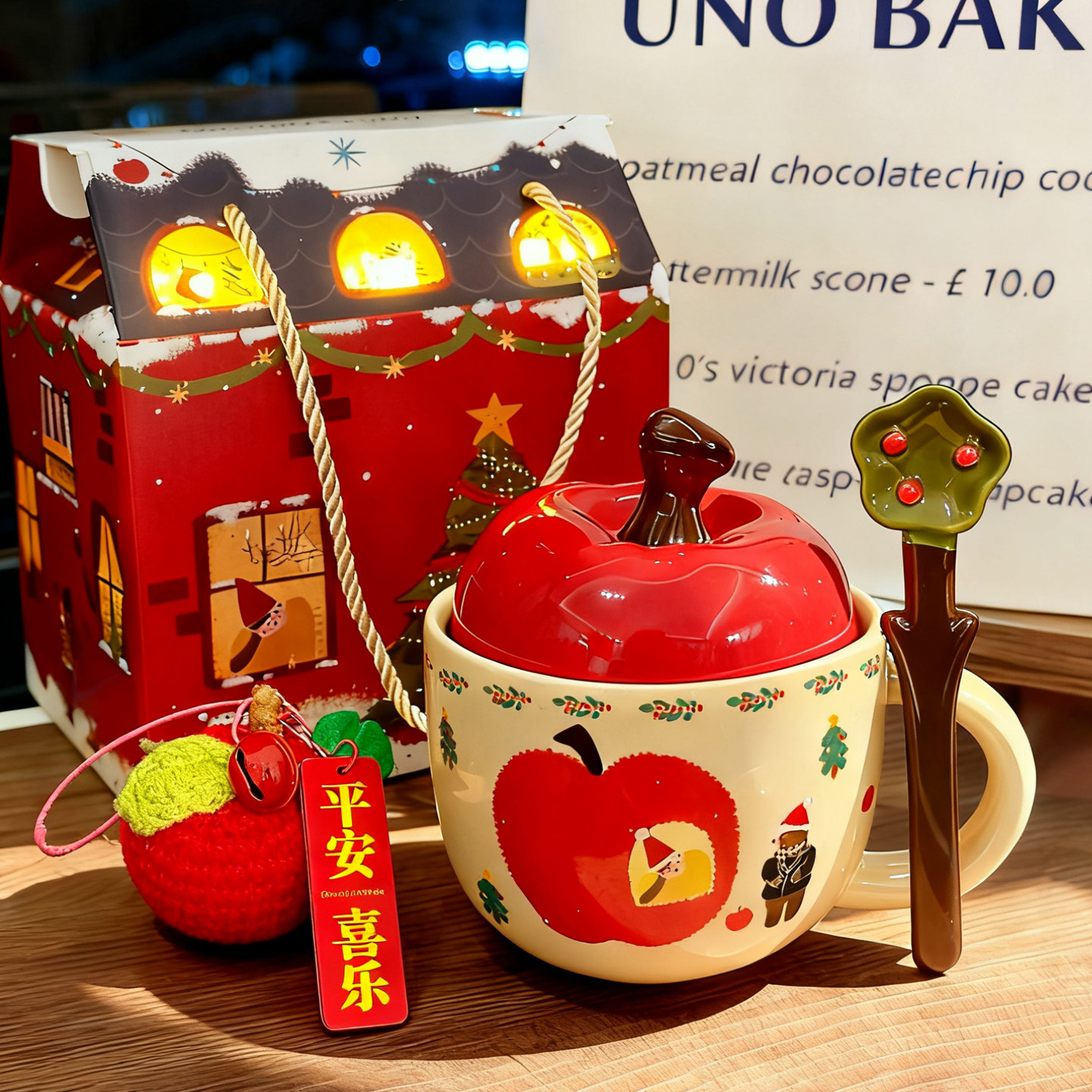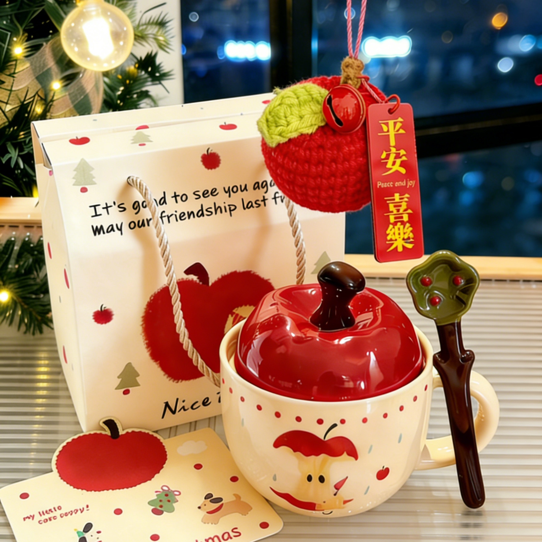 可爱红色苹果陶瓷马克杯子带盖带勺新年送女生伴手礼生日礼物水杯