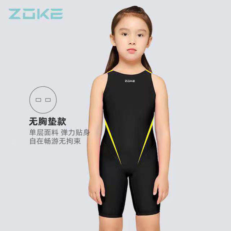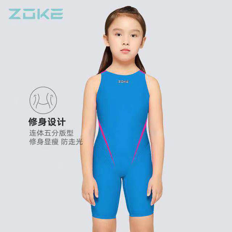 【新品】ZOKE洲克素色青少年训练比赛游泳女童连体五分泳衣包邮