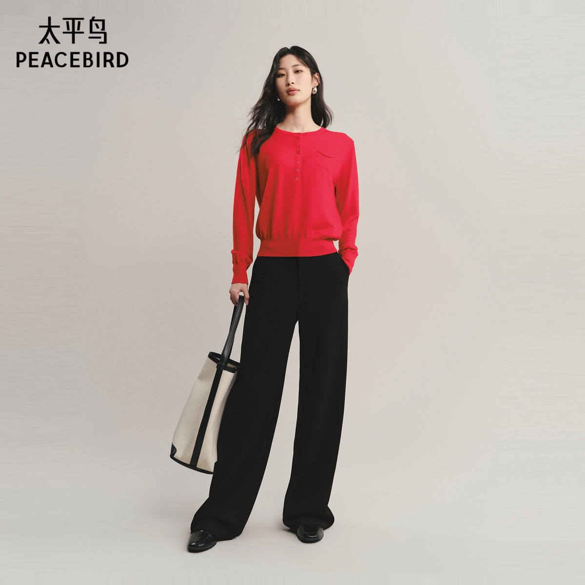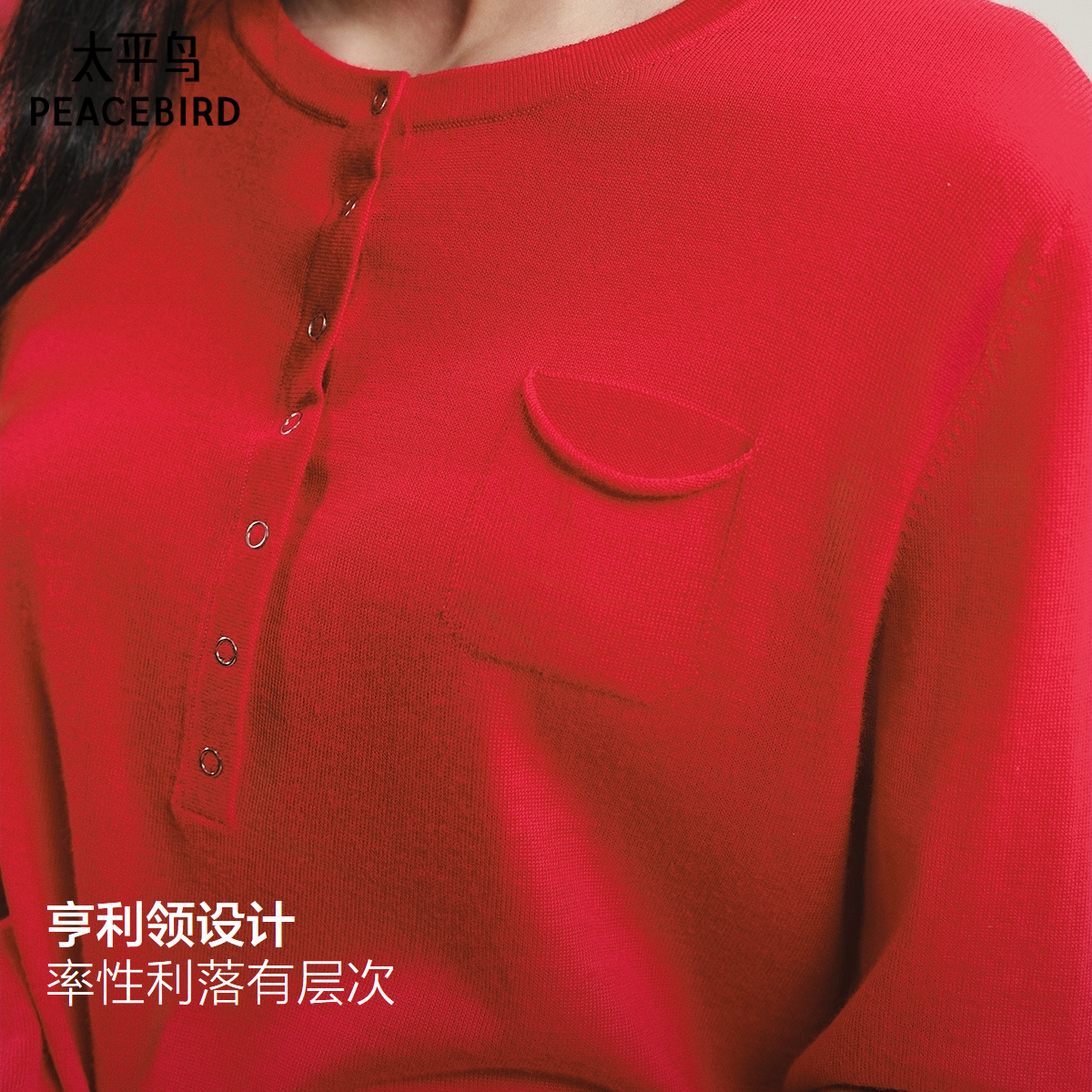 【商场同款】太平鸟25秋可机洗美丽诺全羊毛亨利领套衫A1EEF3408