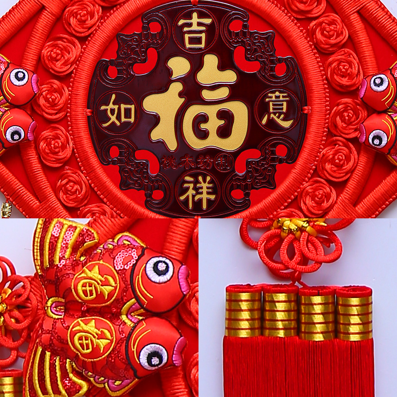 中国结挂件桃木福字客厅装饰家居挂饰春节新房乔迁礼品手工编织