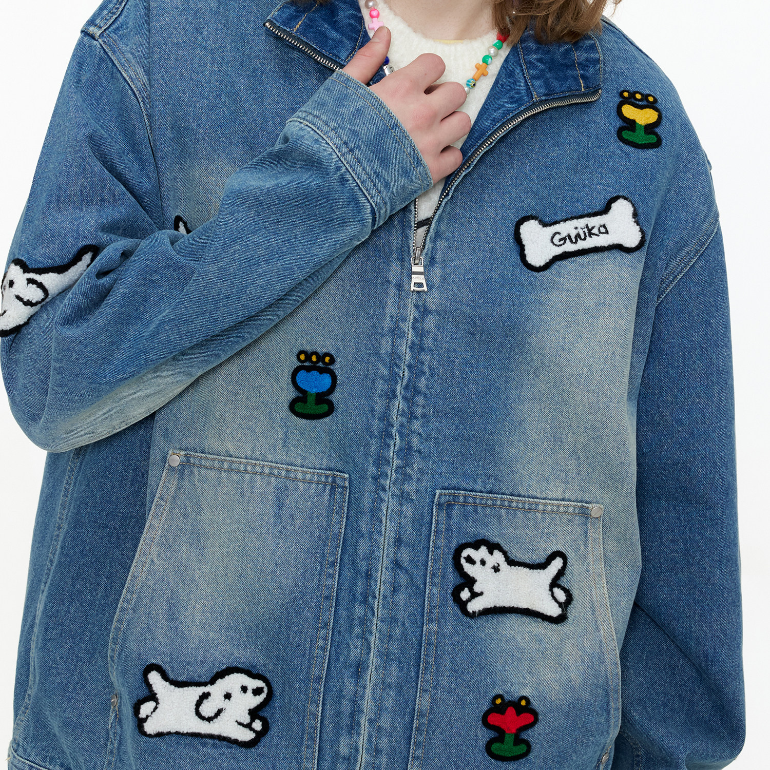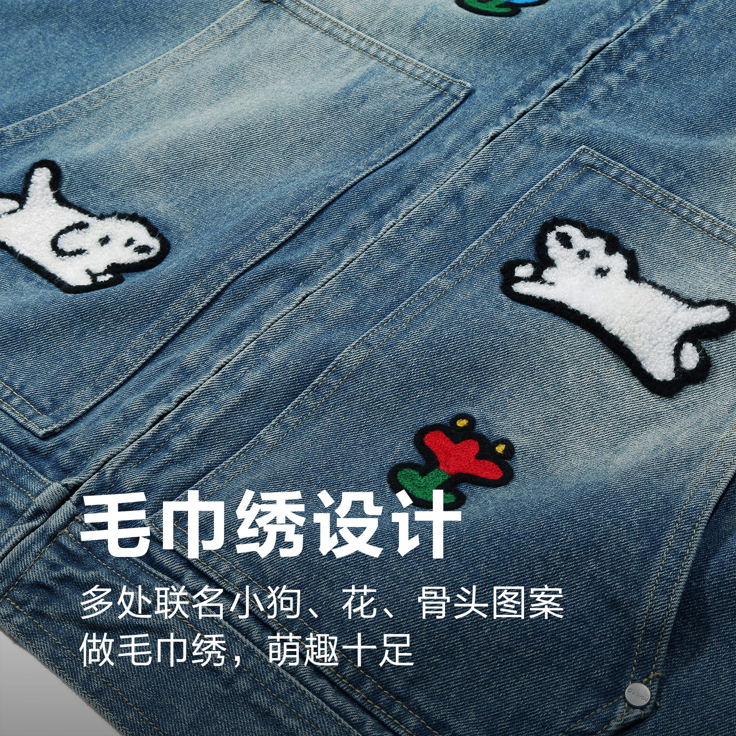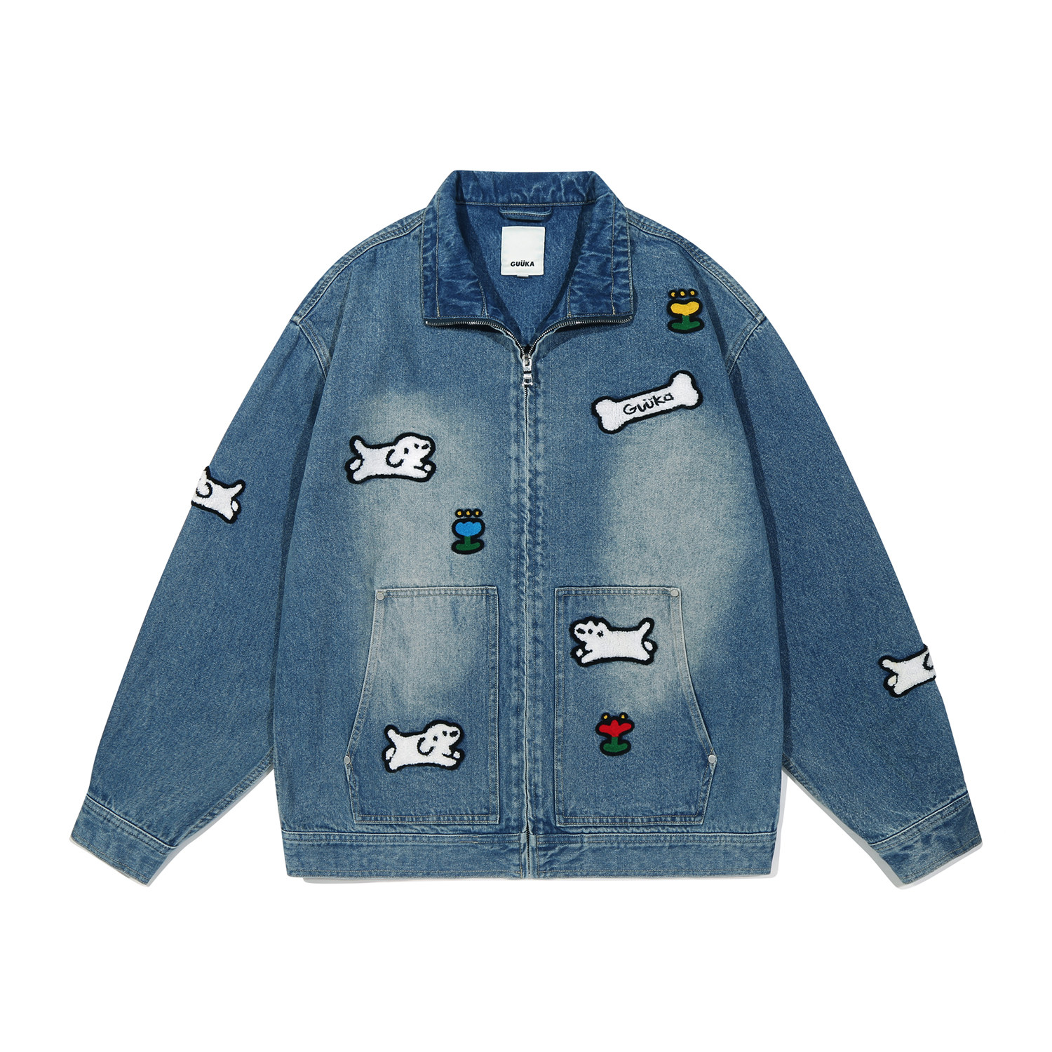 GUUKA潮牌复古水洗正肩夹克 matsui联名小狗刺绣美式牛仔外套宽松