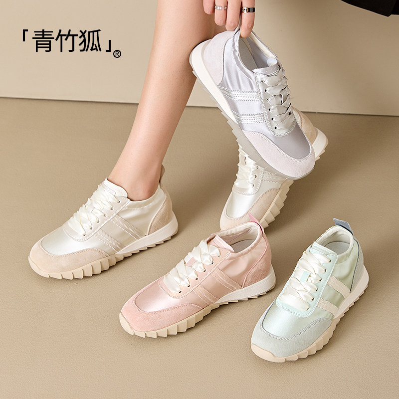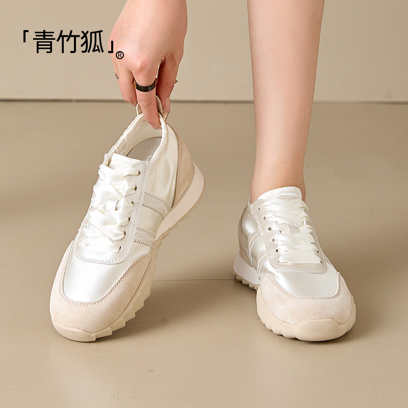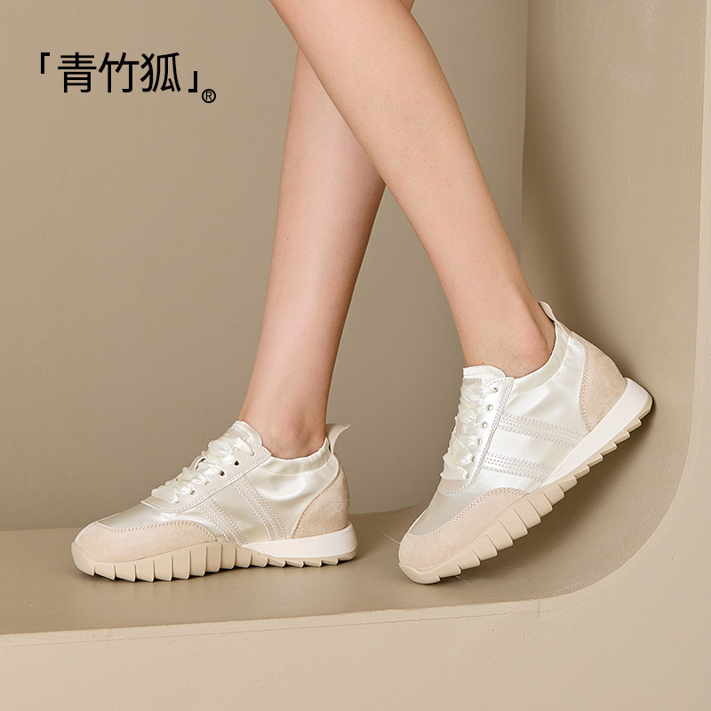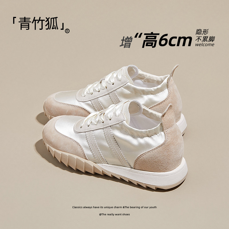 内增高德训鞋女2025新款冬巨好看芭蕾鞋小个子真皮厚底休闲阿甘鞋