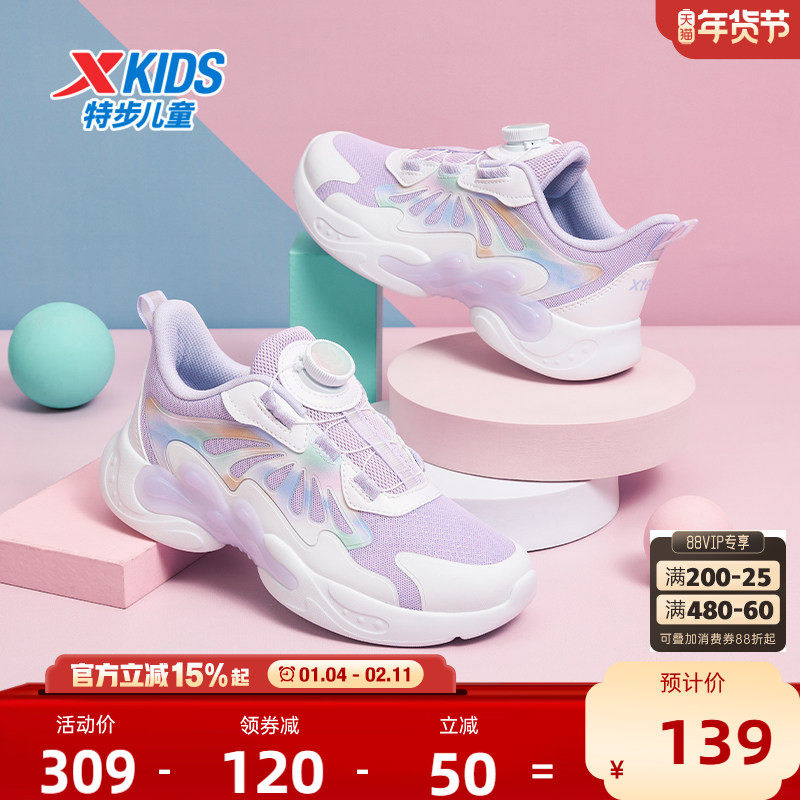 蝶舞|特步女童鞋2025秋冬新款儿童鞋运动鞋网面中大童防滑跑步鞋