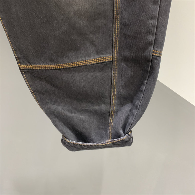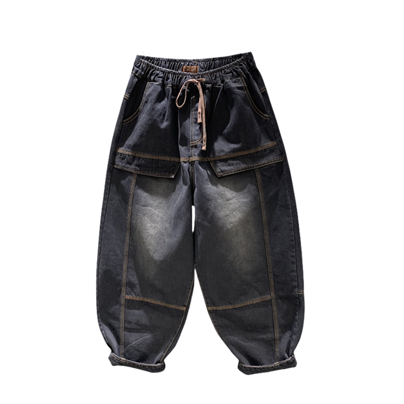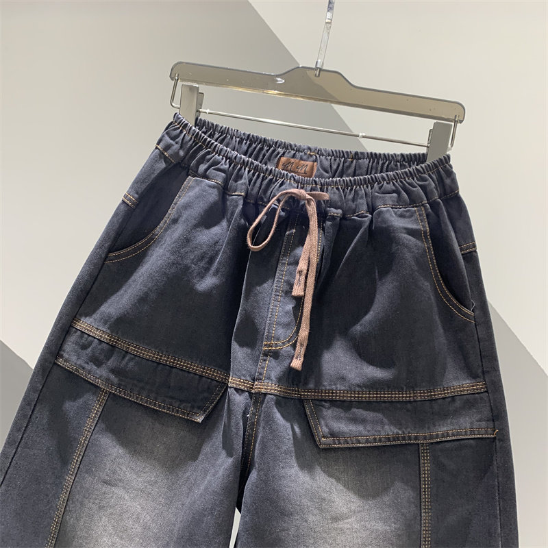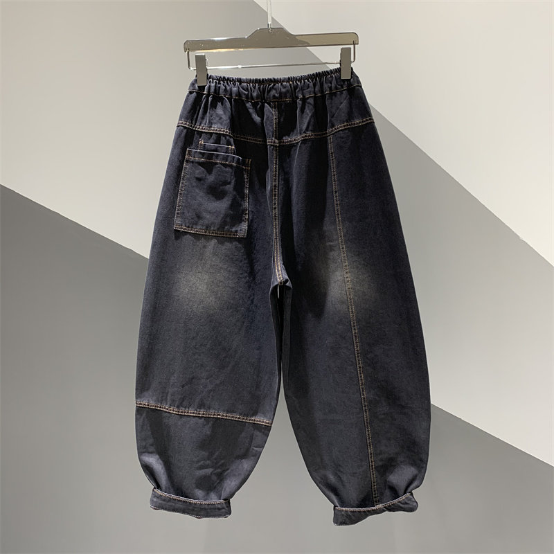 2026年春季新款水洗做旧拼接牛仔哈伦裤女百搭宽松设计感老爹垮裤