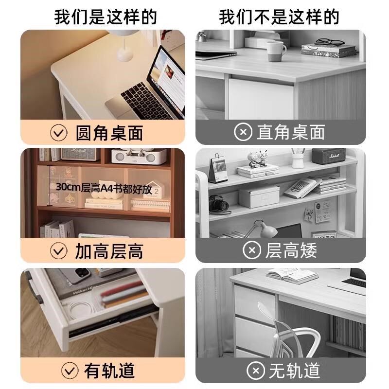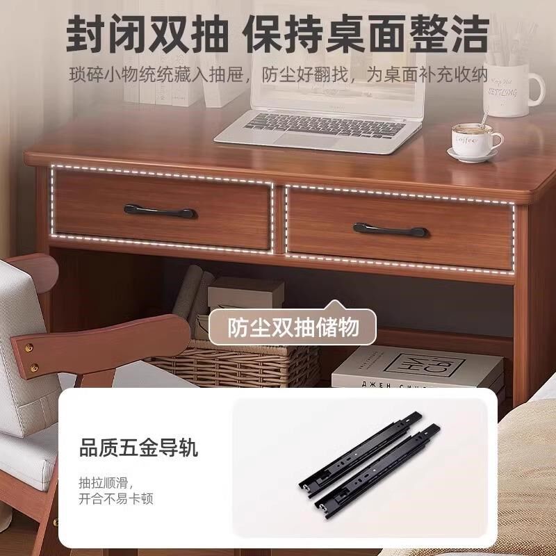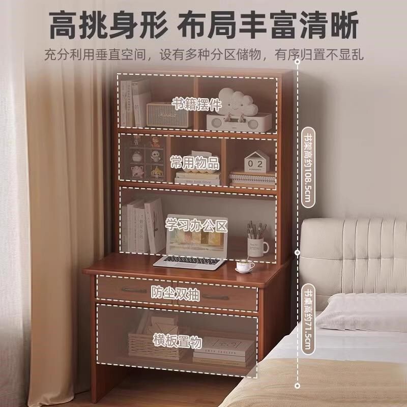家用实木书桌书架一体初高中生学习桌带抽屉小户型桌子床边桌淘