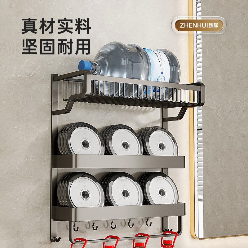 毛巾架卫生间置物l架一体免打孔壁挂浴室厕所卫浴套装太空铝浴巾