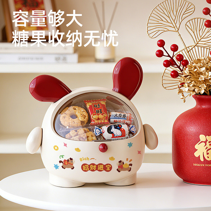 新年糖果盒客厅茶几家用前台桌面收纳筐带盖喜庆过年零食摆放盘罐