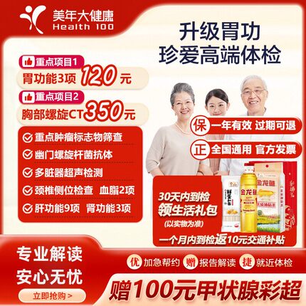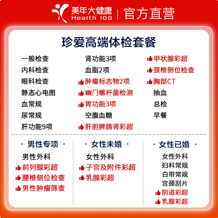 美年大健康珍爱高端体检套餐胸部CT胃功能男女性中老年父母全身