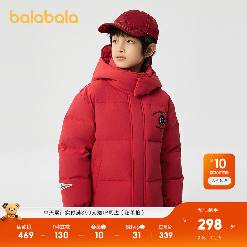 巴拉巴拉童装儿童羽绒服男童2025新款春装防泼水连帽保暖外套时尚