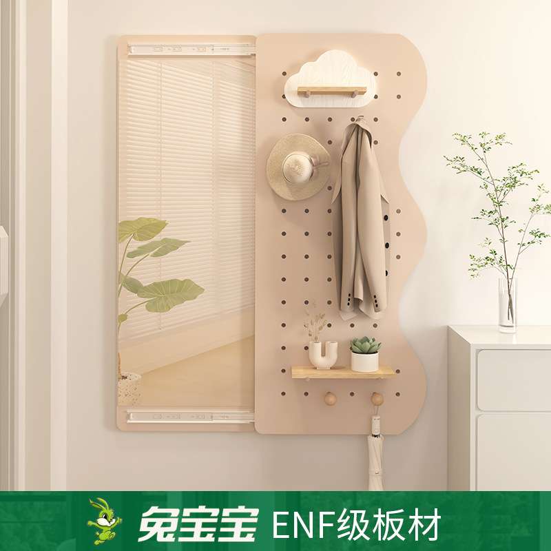 洞洞板穿衣镜推拉镜子全身镜入户玄关隐藏试衣镜壁挂可遮挡