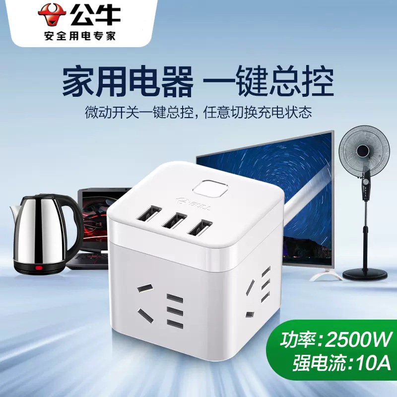 公牛20W快充魔方插座适用苹果手机PD充电插头多功能usb红牛插排插
