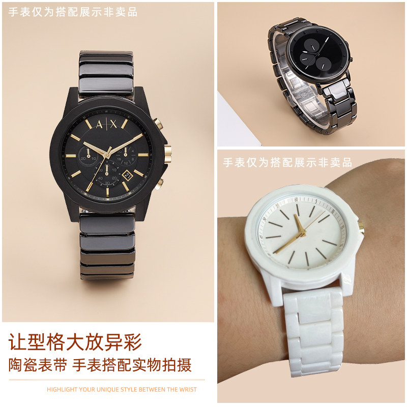 凯帝尼适配阿玛尼手表AX7105 AX7126白月光男女情侣款陶瓷手表带