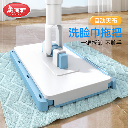 美丽雅洗脸巾拖把可夹抹布静电除尘自动夹布拖把免手洗擦柜子神器