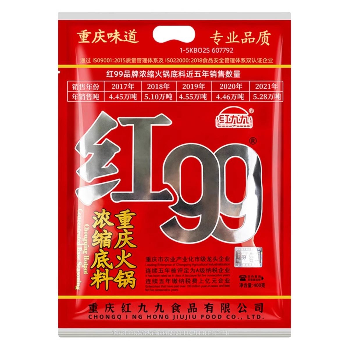 红九九重庆火锅浓缩底料400g*40袋 红汤麻辣烫多用红99 整箱商用